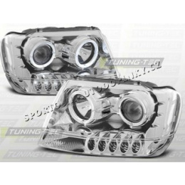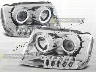CHRYSLER JEEP GRAND CHEROKEE 1999-05 PŘEDNÍ ČÍRÁ SVĚTLA ANGEL EYES CHROM