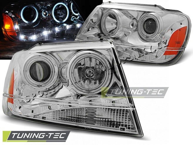 CHRYSLER JEEP GRAND CHEROKEE 1999-05.2005 PŘEDNÍ ČÍRÁ SVĚTLA DAYLIGHT LED CHROME