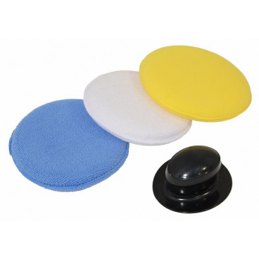 Sada tří kotoučů o průměru 12 cmp pro dokonalé ruční vyleštění karoserie vozu. Ergonomická rukojeť je vyrobena tak, aby se dala použít na každý kotouč.
