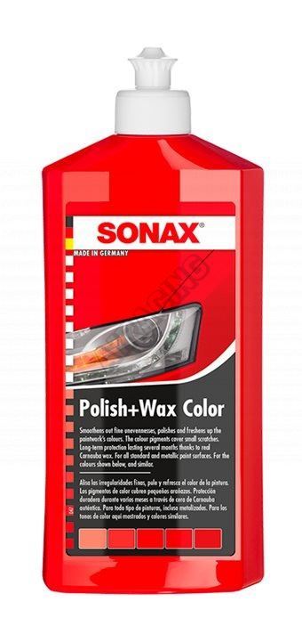 Řada - SONAX Color Polish Působí na bázi NANO technologie, obsahují přírodní vosk Karnauba. Je vodou ředitelná, bez rozpouštědel. Pro všechny běžné i metalické laky, oživuje barevný vzhled laku a přináší vysoký lesk s dlouhodobým účinkem. Čistí, leští a konzervuje najednou. Zakryje i drobné škrábance na laku. Přípravek důkladně protřepeme. Pomocí houby naneseme tenkou vrstvu leštěnky a ihned rozleštíme suchým hadrem. Značka - SONAX Vysoká kvalita, výborná účinnost, jednoduchá aplikace výrobků, splňuje požadavky i nejnáročnějších zákazníků. Šetrná k životnímu prostředí.