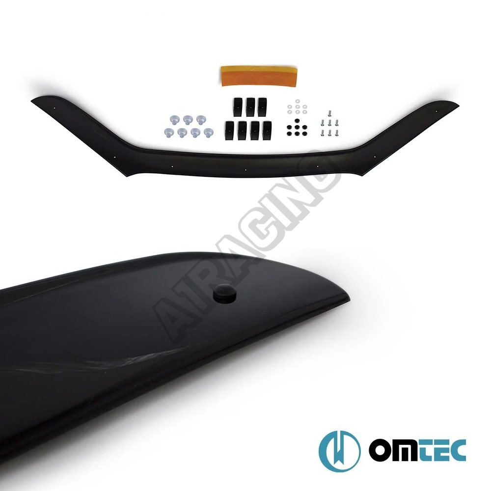 V galerii fotek je videt i momtážní schéma, kde na díry v deflektoru našroubujete plastové drzáky, které nasadíte do hrany kapoty v místech, kde jsou originální díry na které je našroubujete, plastové špunty nalepíte z vnitřní strany deflektoru a budou dělat přirozený odpor mezi kapotou a deflektorem, aby ve vyžší rychlosti nedocházelo odporem vzduchu k deformaci. Je zde také montážní video