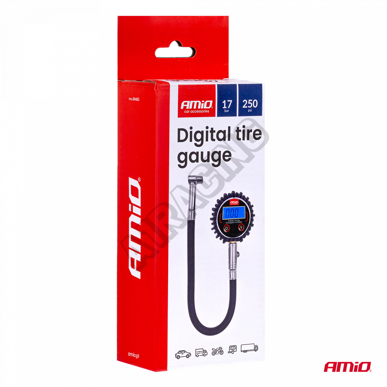 Digitální manometr s hadicí a resetovacím ventilem 17 bar AMIO-04465417 Kč