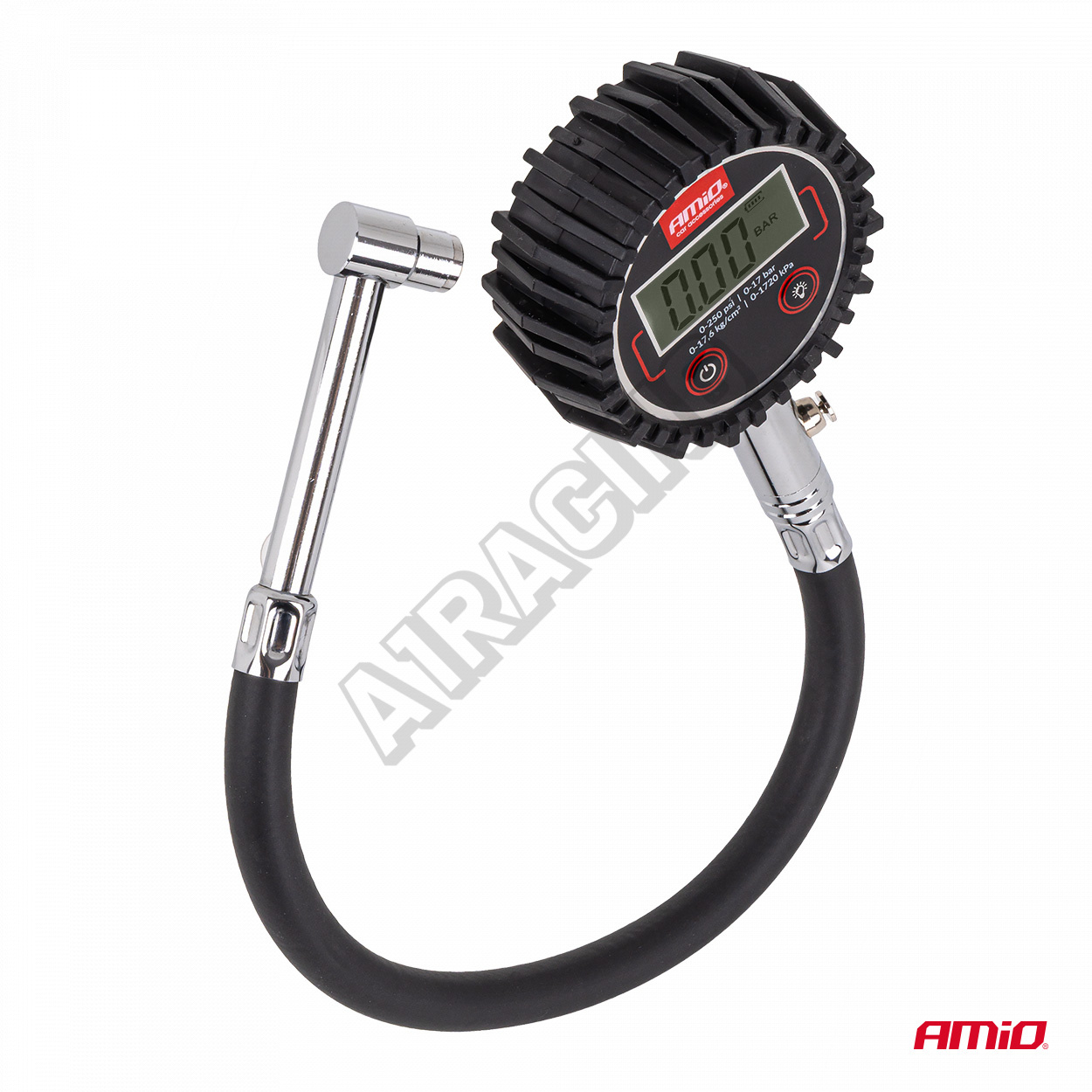 Digitální manometr s hadicí a resetovacím ventilem 17 bar AMIO-04465