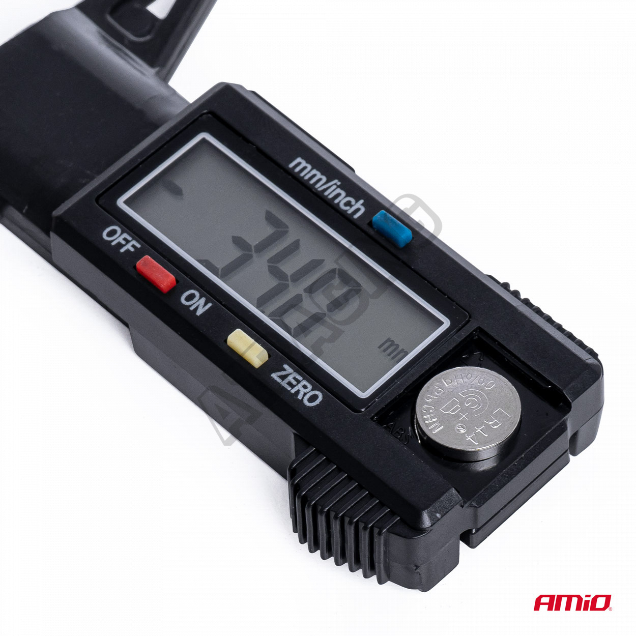 Díky tlačítkům kolem displeje je měření hloubky dezénu velmi jednoduché, protože stačí měřicí tyčinku umístit do drážek dezénu a celý přístroj přitlačit k pneumatice. Získaný výsledek lze snadno přečíst, protože se objeví na digitálním displeji. Měřič je napájen bateriemi, hodí se do něj baterie typu SR44 nebo LR44. Měřič po cca. Po 5 minutách nečinnosti se automaticky vypne, čímž šetří baterii.