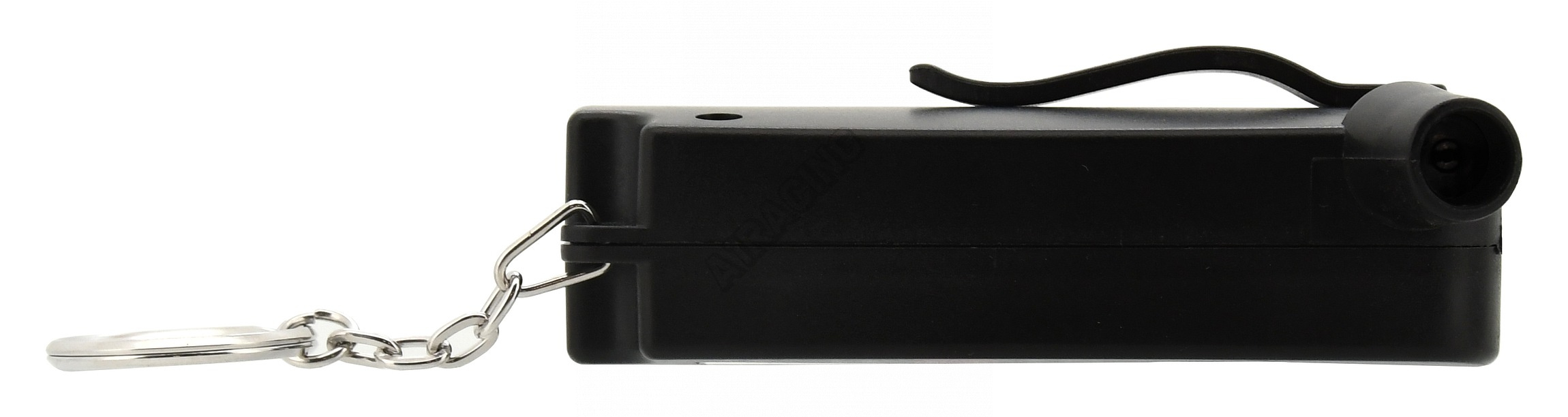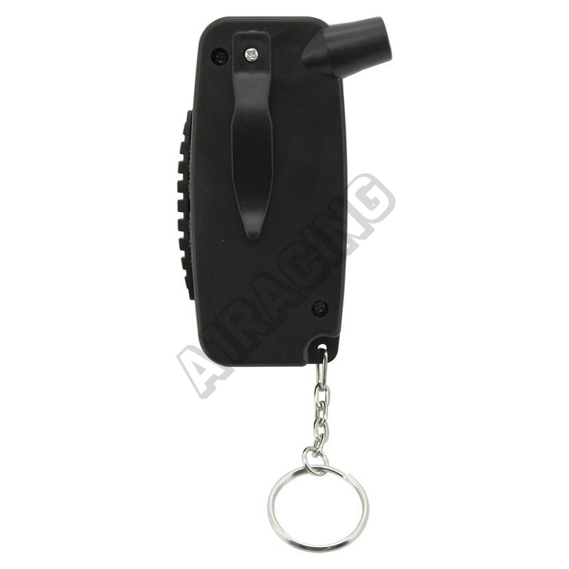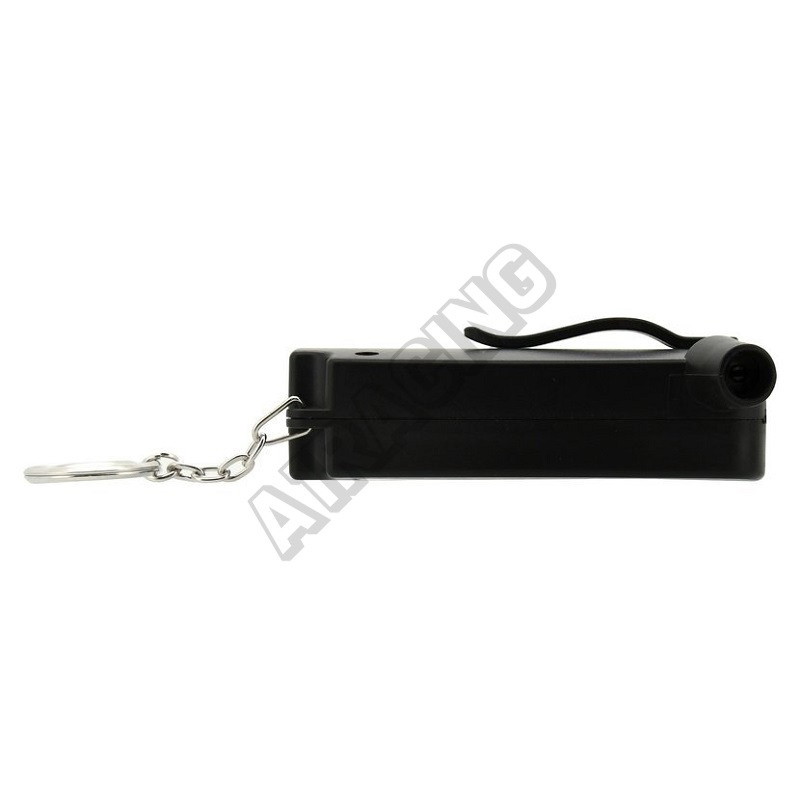 Je opatřen kroužkem pro zavěšení např. na kíče a zároveň klipsem pro upnutí na kapsu či pásek.
