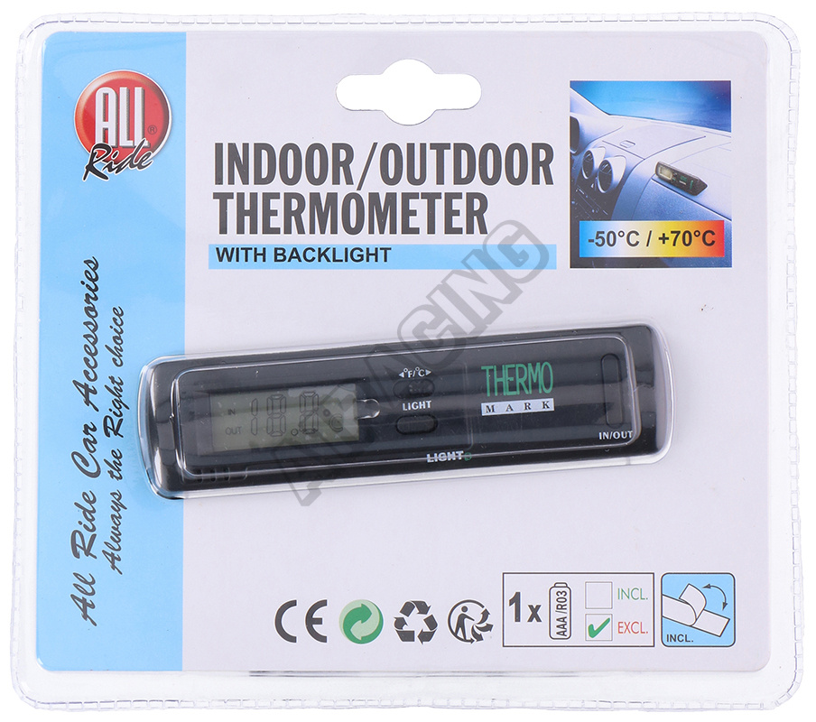 Digitální teploměr s modrým podsvícením pro měření vnitřní i vnější teploty. 5800003: Tón upozorní na bod mrazu. Možnost měřit teplotu v °F i °C. Možnost měřit teplotu v °F i °C. Vč. oboustranné lepicí pásky pro připevnění na palubní desku. Napájení na 1 AAA běžnou tužkovou baterii (není součástí)