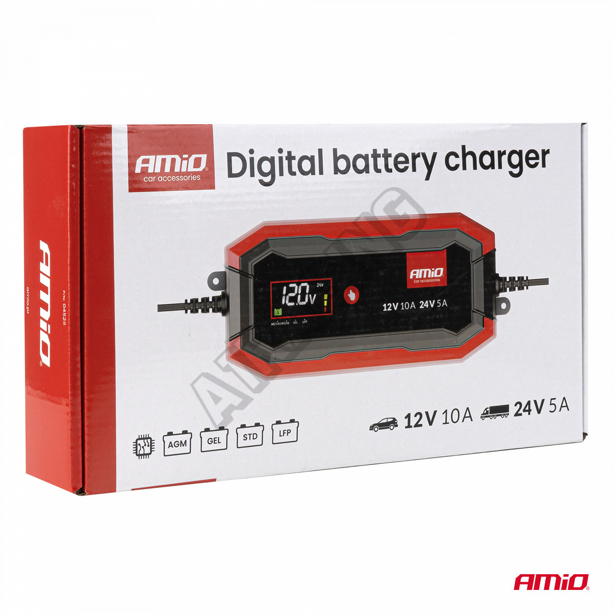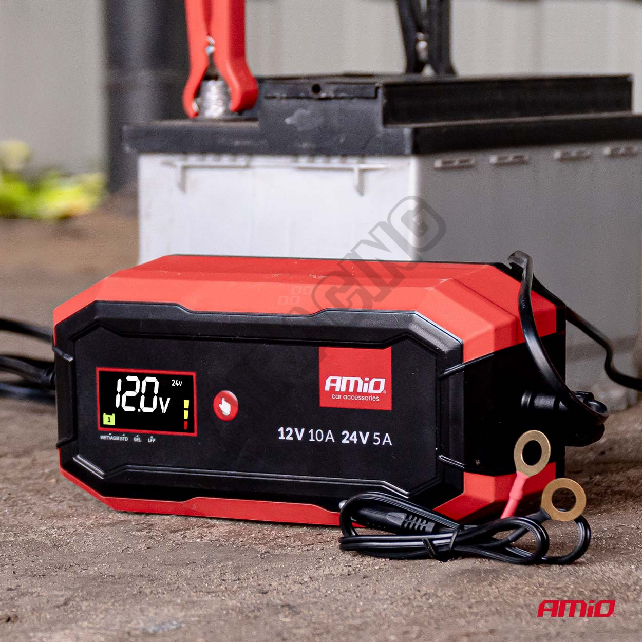 Digitální usměrňovač AMiO PRO je profesionální zařízení určené k nabíjení baterií AGM, GEL a LiFePo4 (LFP) v osobních a nákladních vozidlech, zemědělských strojích a profesionálním vybavení.