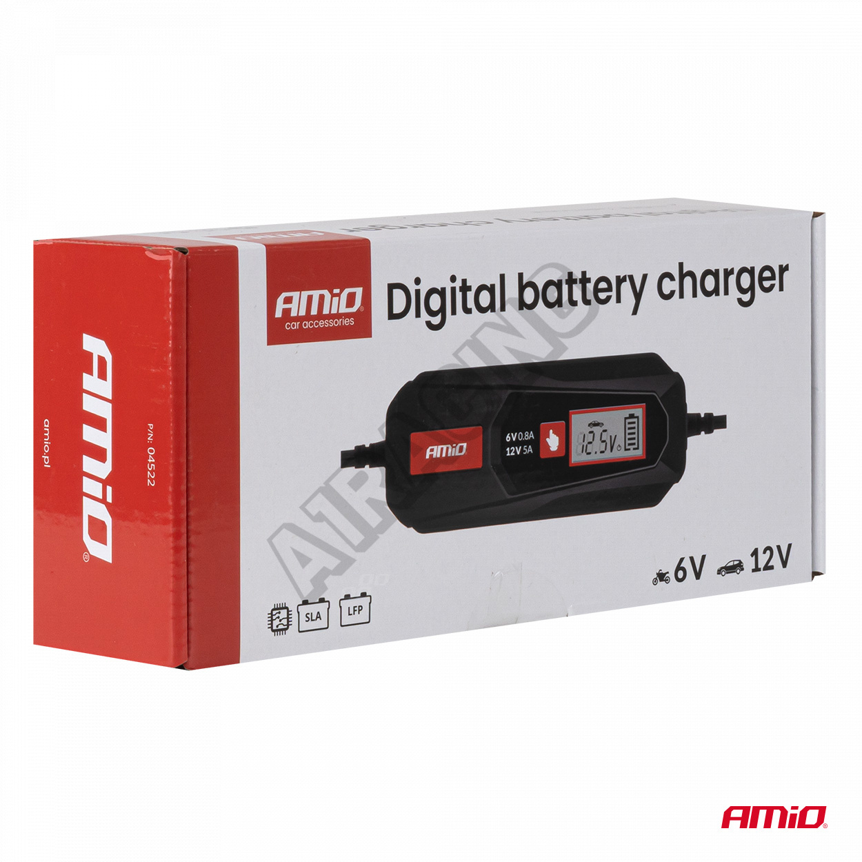 Digitální nabíječka AMiO je spolehlivé a snadno použitelné zařízení, ideální pro nabíjení akumulátorů v automobilech, motocyklech, lodích nebo skladovém vybavení, zajišťující dlouhou životnost baterií a plnou kontrolu nad procesem nabíjení.