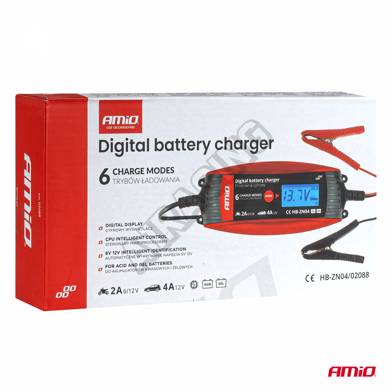 Digitální usměrňovač nabíječka na akumulátor 6V 12V - 2A 4A - DVL DBC AMIO-02088
