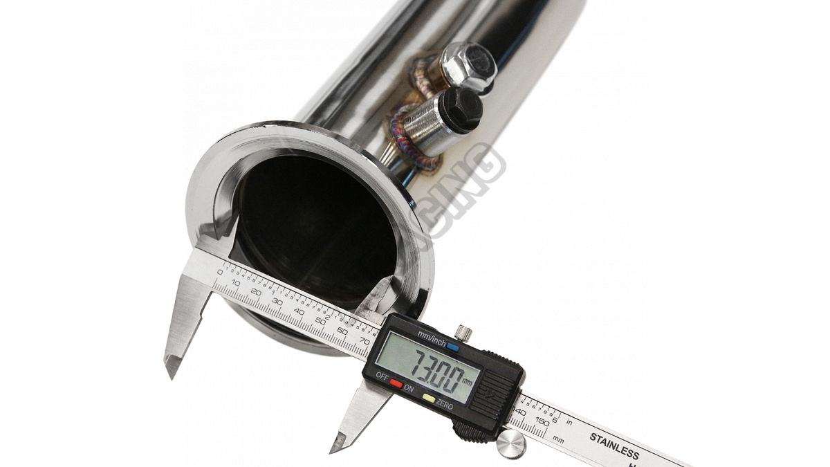 Downpipe firmy TurboWorks, vyrobený z nerezové oceli. Downpipe odstraňuje filtr DPF, může být vyžado