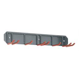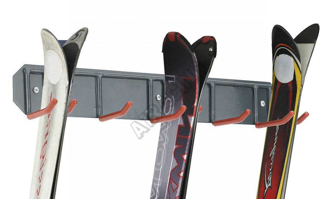 Držák je celokovový a je tvořen pevnou základnou a sestavou háků, pro uskladnění 3 párů lyží a hůlek. Háky jsou navíc opatřeny gumou, která zabraňuje poničení a zároveň funguje jako protiskluzná vrstva.