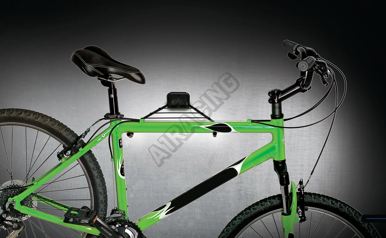 Kovový držák je tvořen sklápěcím zdvojeným ramenem a mřížkou. Konce držáku jsou pogumované pro bezpečné ucycení rámu bicyklu a na mřížku je možné odložit dodatečné příslušenství jako je helma, brašna atp..