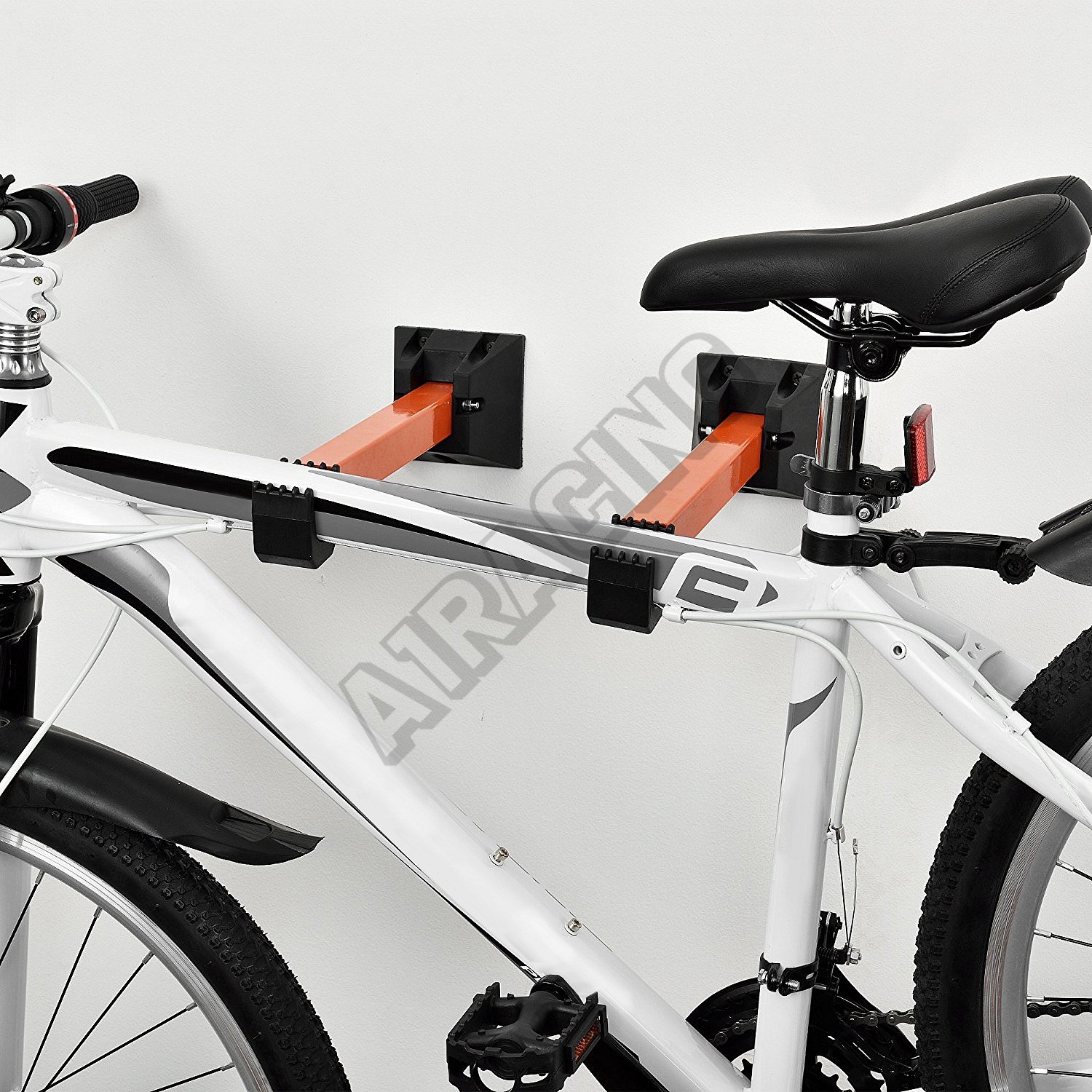 Dvoudílný, sklápěcí držák jízdního kola určený k montáži na stěnu. Držák s kovovou konstrukcí je tv