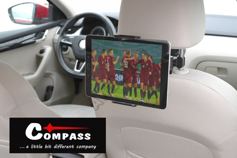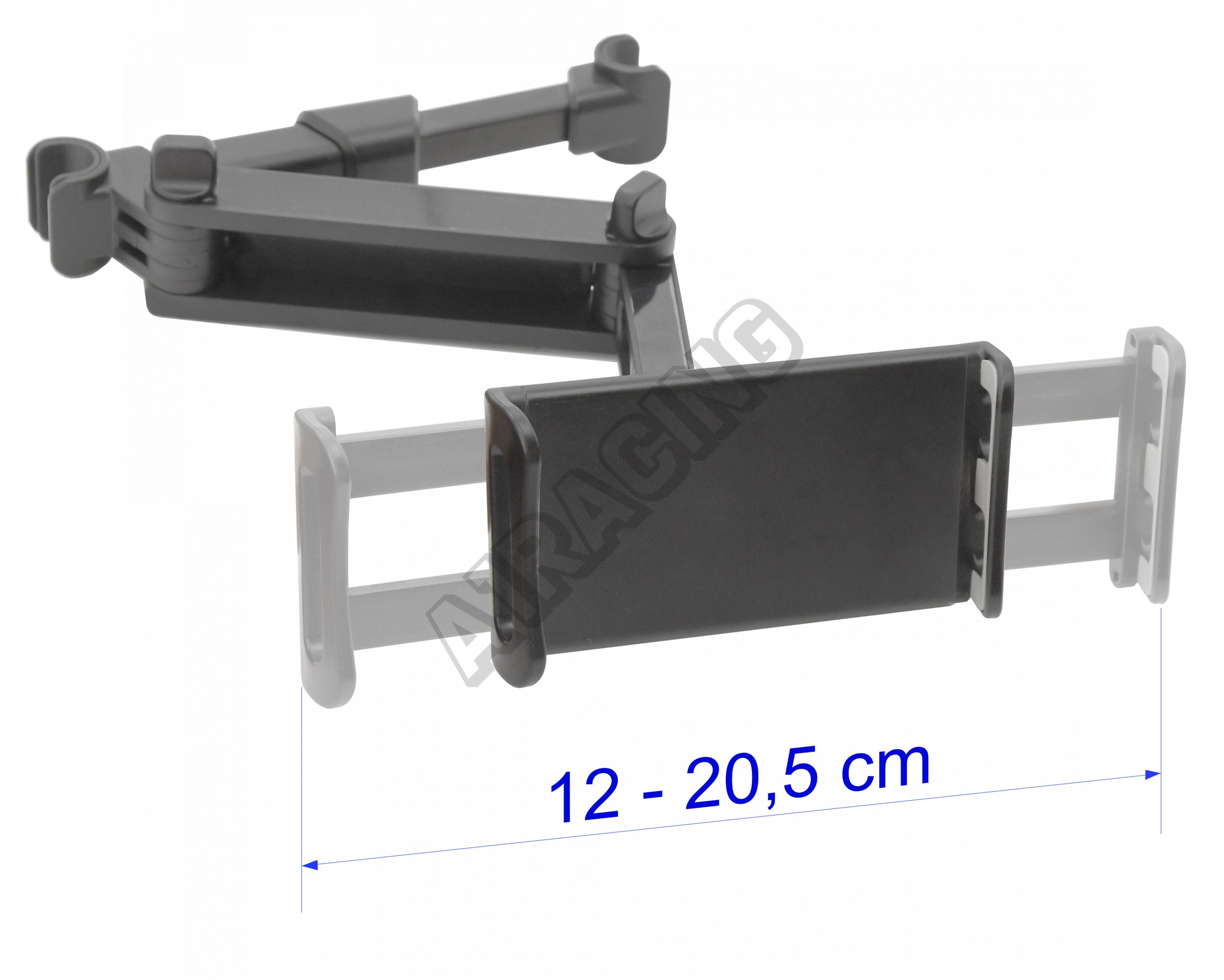 Díky široké škále nastavení úhlů zle nastavit prakticky libovolnou polohu. Držák je navíc opatřen vysouvacím ramenem, díky kterému lze uchytiti ke každé opěrce sedadla.