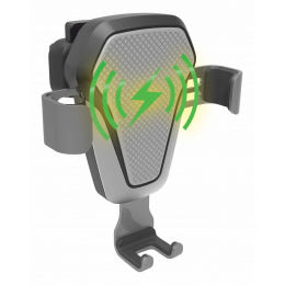 Univerzální držák telefonu řady LUKE pro upevnění do mřížky ventilace s možností automatického bezdrátového dobíjení telefonu standardu Qi a umístěním telefonu jednou rukou.