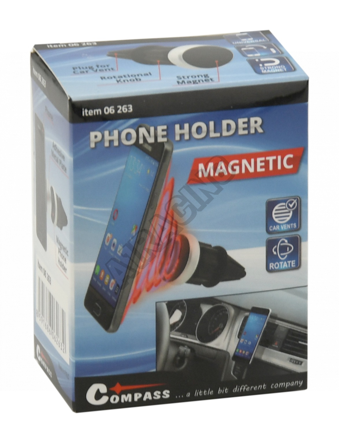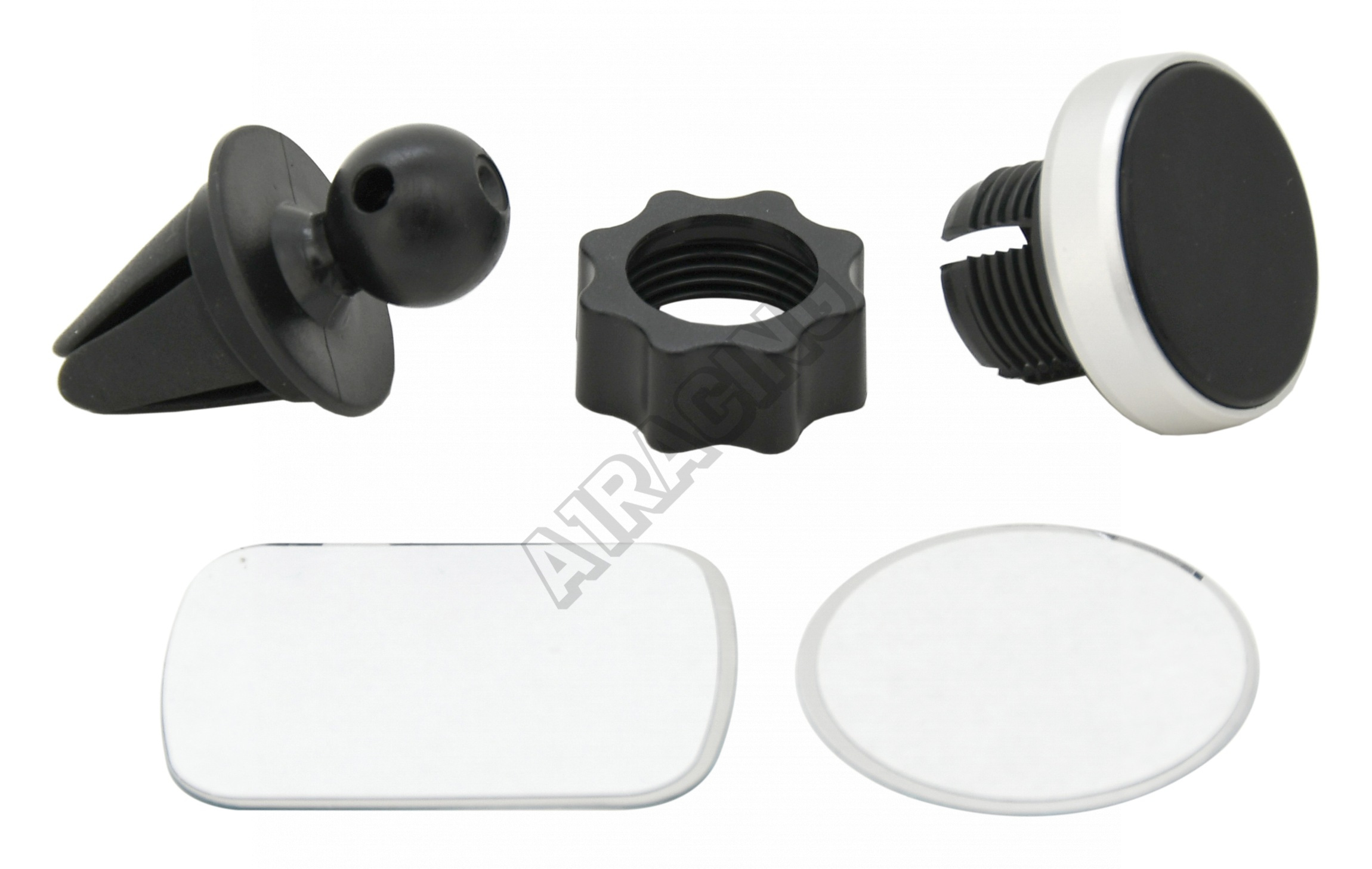 Univerzální, magnetický držák telefonu do mřížky ventilace automobilu. Tělo držáku je opatřeno klou