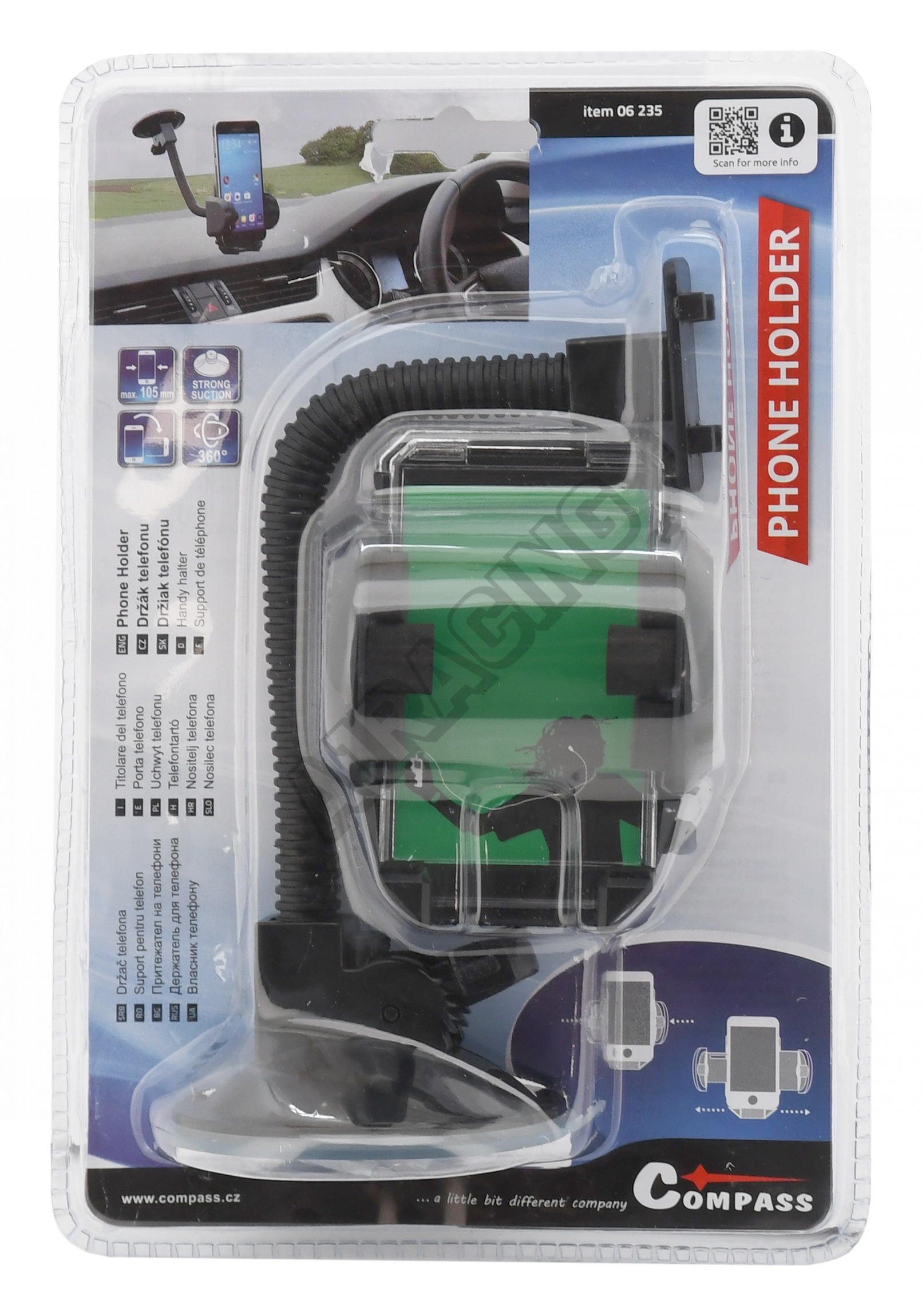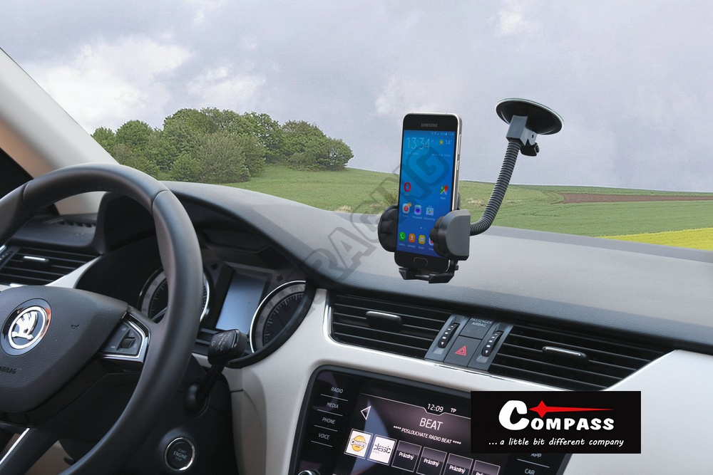Držák, s extra silnou přísavkou, pro uchycení telefonu až do šířky (nebo výšky) 10 cm.