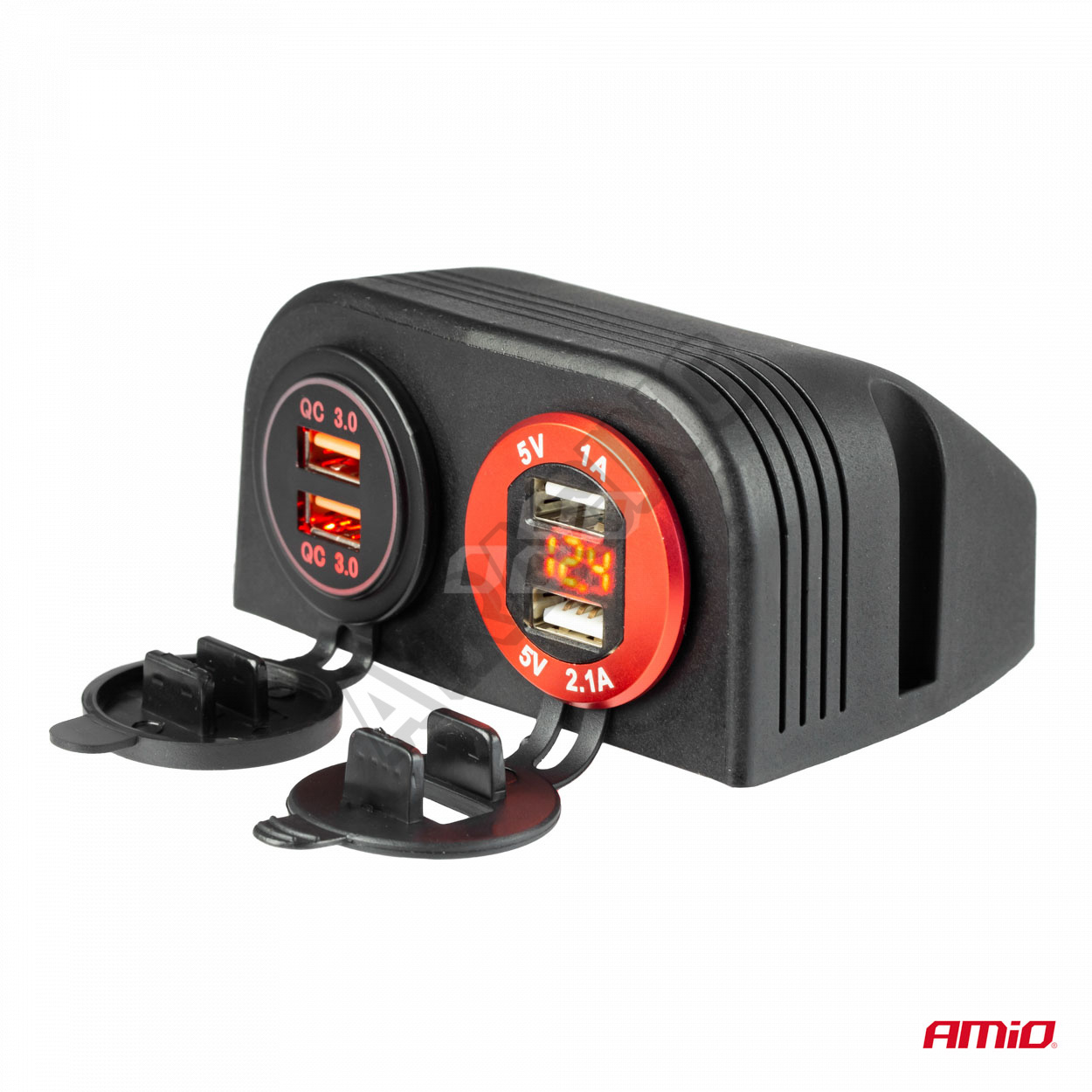 Krytina pro povrchovou montáž se 2 otvory o průměru 30mm určenými pro další zařízení. Je možné namontovat kulatý voltmetr, USB nabíječky nebo zásuvku zapalovače.
