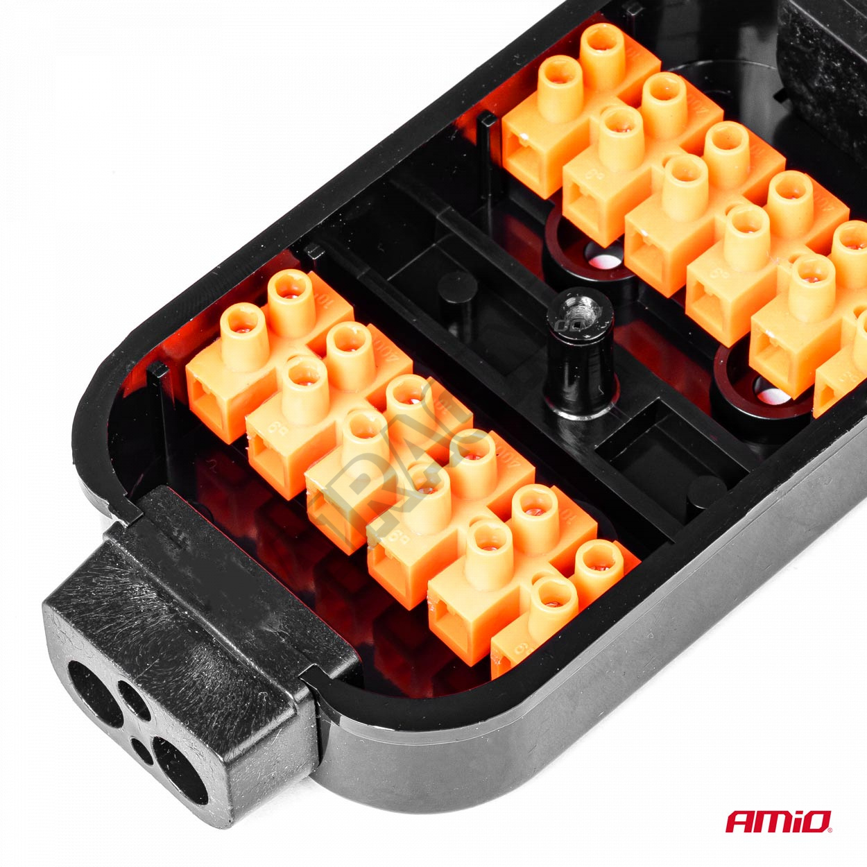 Krabice elektrické instalace přívěsu vybavená svorkovnicí. Hermetická krabice - šroubovací. Maximáln