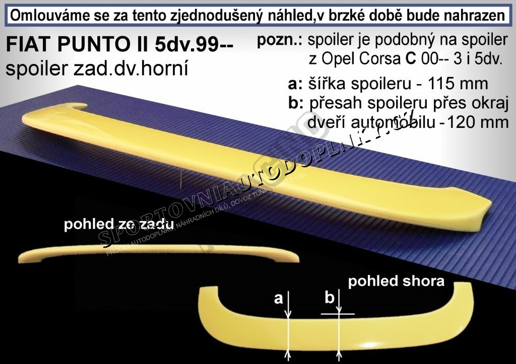 FIAT PUNTO II 5D (99+) spoiler zad. dveří horní (EU homologace)