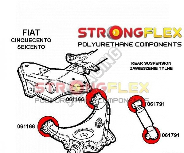 Fiat Seicento 1998-08 StrongFlex Sport (tvrdost 90ShA) kompletní sestava silentbloků na celé auto obsahuje :