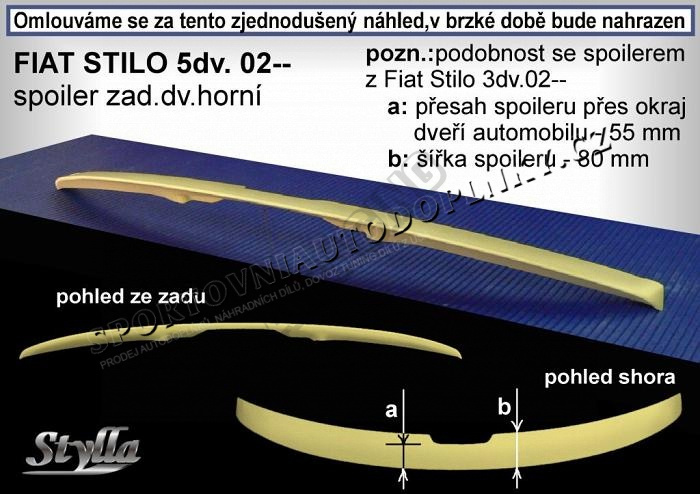 FIAT STILO 5D (02+) spoiler zad. dveří horní