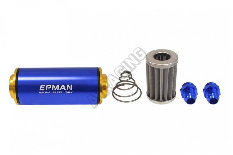 Vysoce výkonný externí palivový filtr. Vyrobeno z eloxovaného hliníku T6061. Vložka ze speciální oce