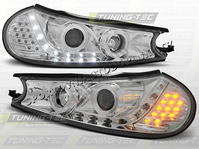 FORD MONDEO MK2 1996-00 PŘEDNÍ ČÍRÁ SVĚTLA DAYLIGHT LED CHROME