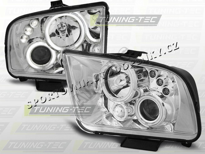 FORD MUSTANG 2005-09 PŘEDNÍ ČÍRÁ SVĚTLA ANGEL EYES CHROME