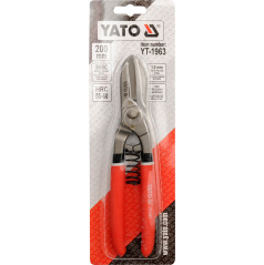 Nůžky rovné, délky 200 mm na plech. Vhodné pro stříhání oceli do tloušťky 1 mm. Zhotovené z S55C oc