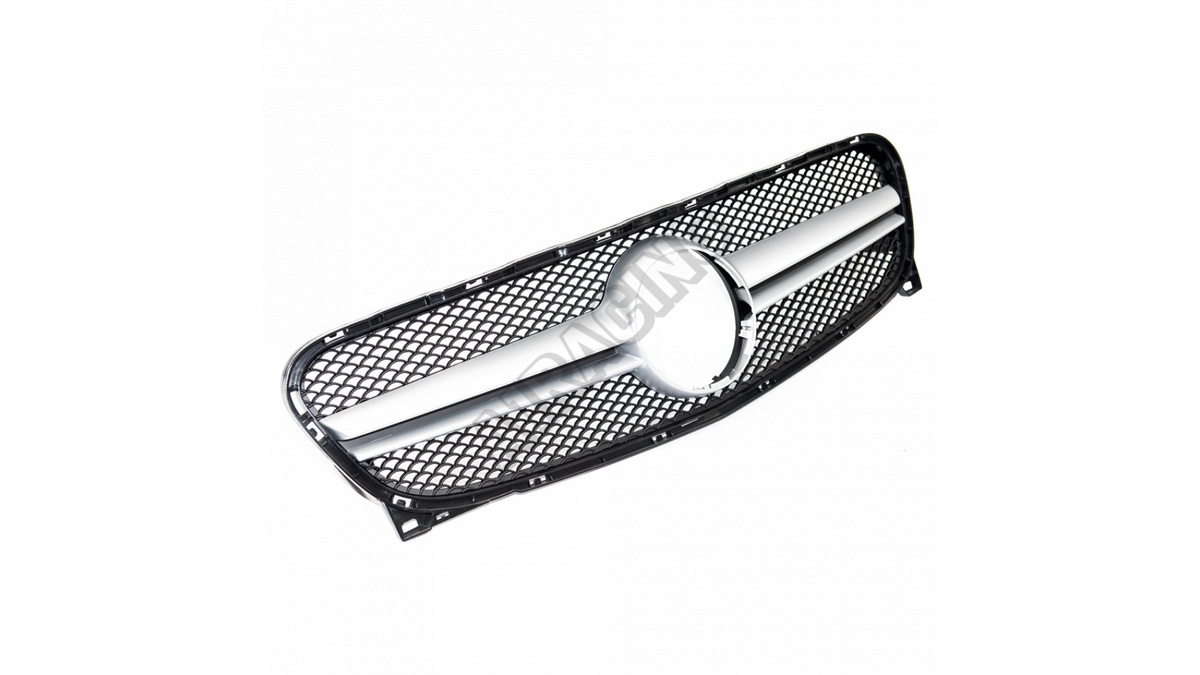 Tento sportovní gril ve stříbrné nebo chromové barvě je určen pro SUV značky MERCEDES GLA-Class (X156) vyráběného v letech 2014-2017.