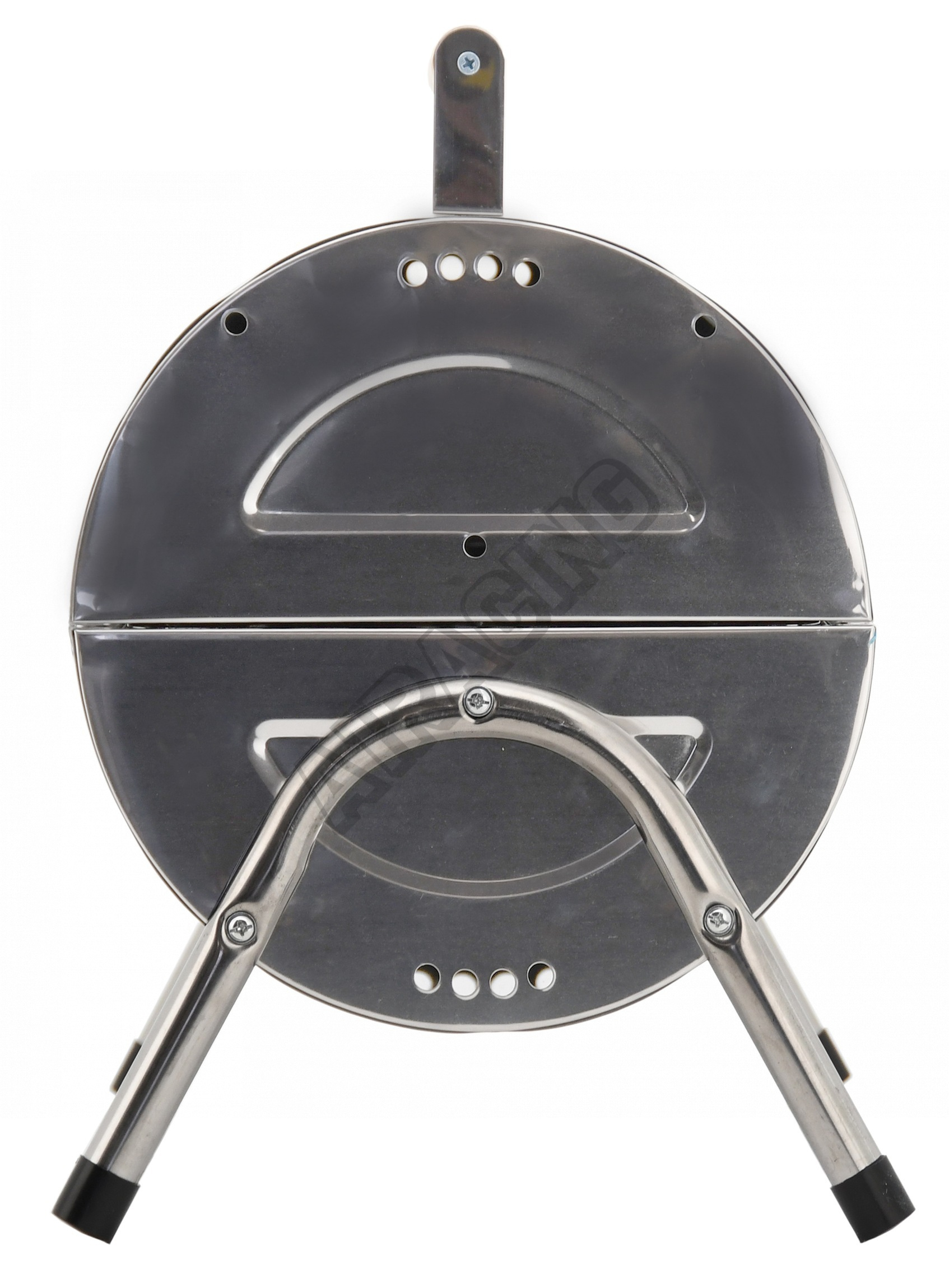 Konstrukce je vyrobena z kvalitního nerezového plechu s leštěným povrchem. Dřevěné madlo zajistí pohodlné přenášení zařízení. Stabilitu zajištují čtyři kovové nohy, přišroubované k tělu grilu.