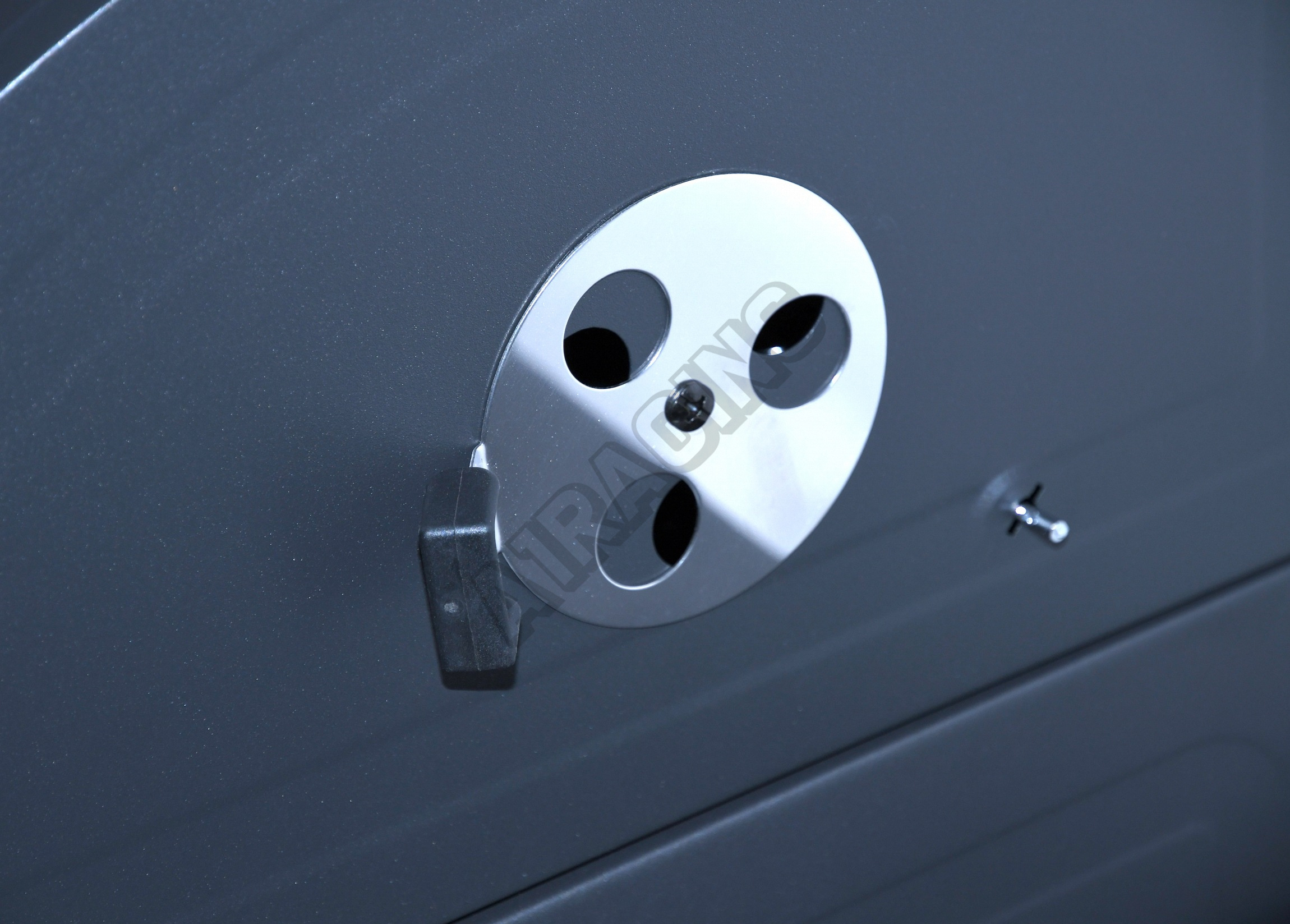 Ovládací kovové prvky a rukojeti mají dostatečné rozměry pro pohodlný úchop a zajišťují snadnou manipulaci. Oboustranná ocelová regulace ventilace perfektně lícuje s konstrukcí. Vyklápěcí víko je ve vrchní části doplněné teploměrem pro stálou kontrolu teplot uvnitř grilu.