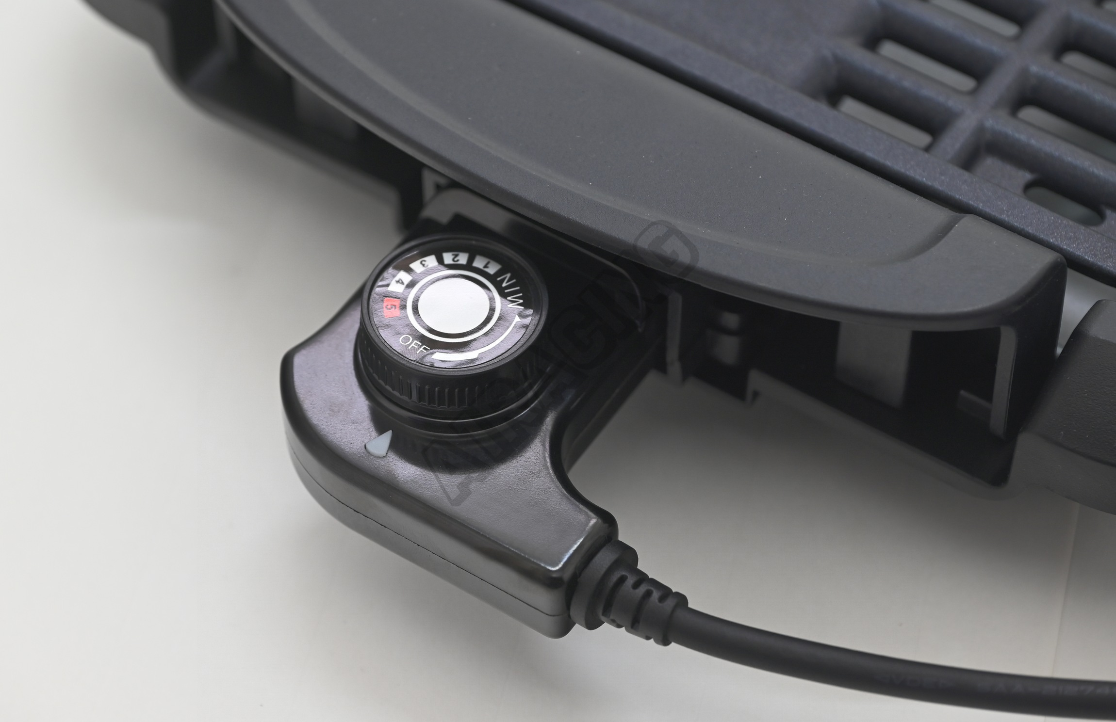 Boční část grilu je opatřena zásuvkou určenou pro přívodní kabel s termostatem a ovladačem pro plynulou regulaci výkonu. Napájecí kabel 230V má délku cca 120 cm.