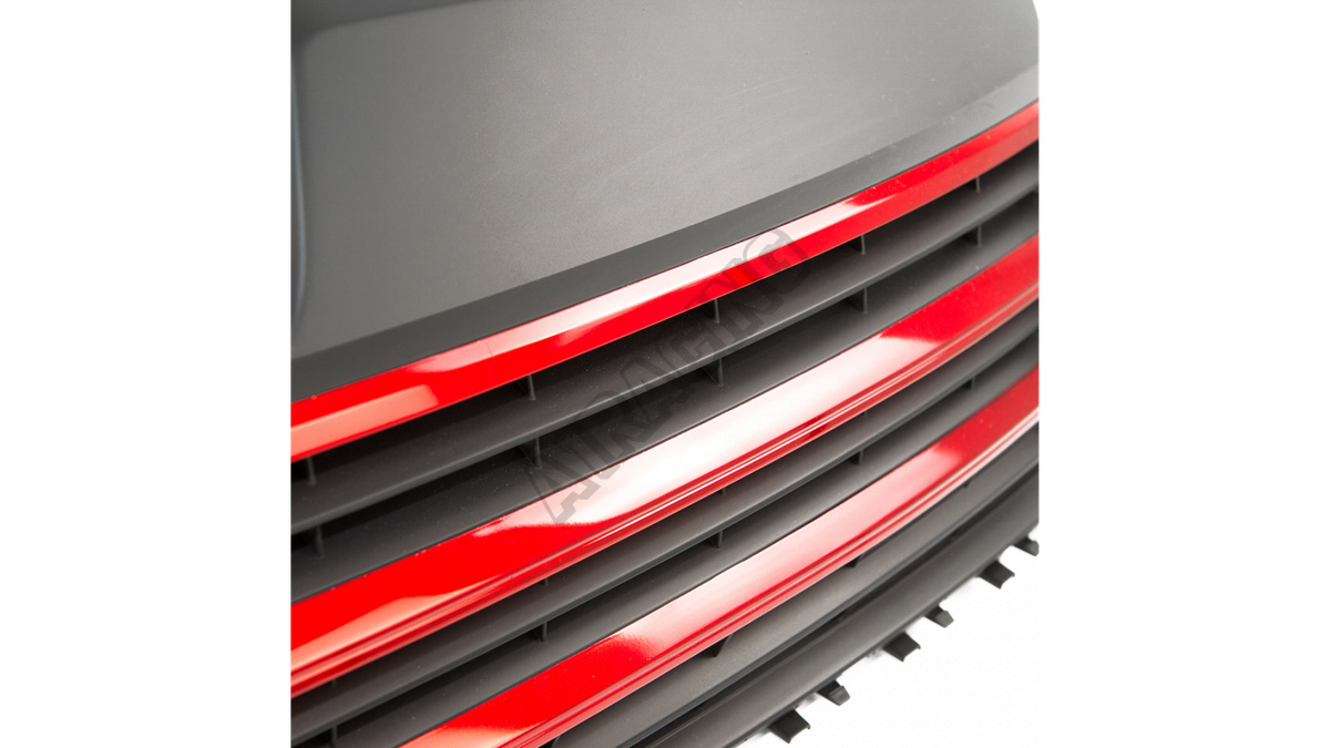 S červenými lištami tento gril dodává barevný akcent přední části vozidla, čímž mu dodává moderní vzhled.