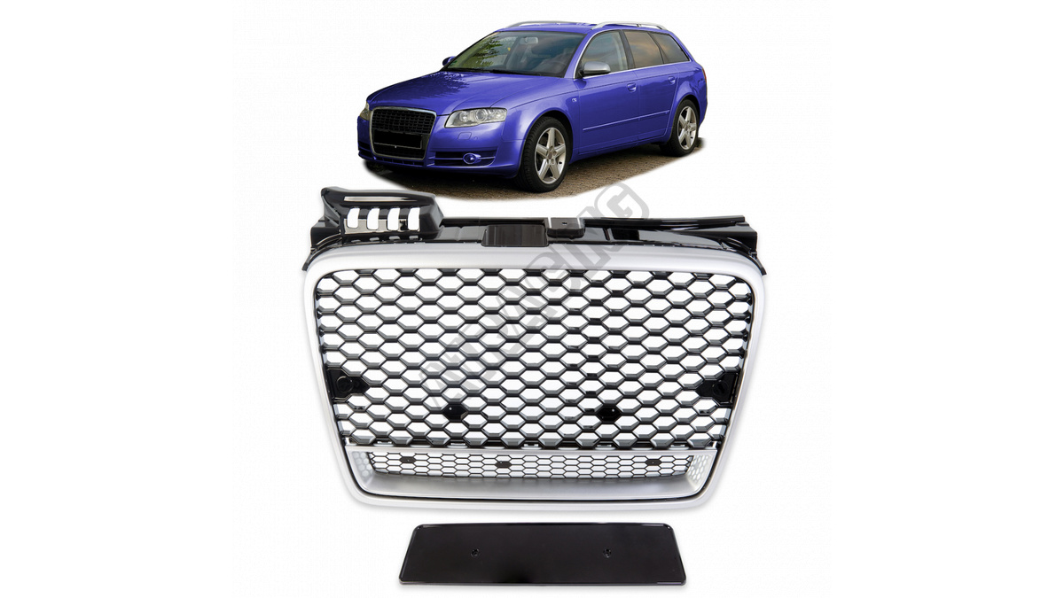 Tento stylový sportovní gril v barvě Gloss Black a Stříbrné byl navržen speciálně pro AUDI A4 B7 (8E) Sedan Avant vyráběné v letech 2004-2007.