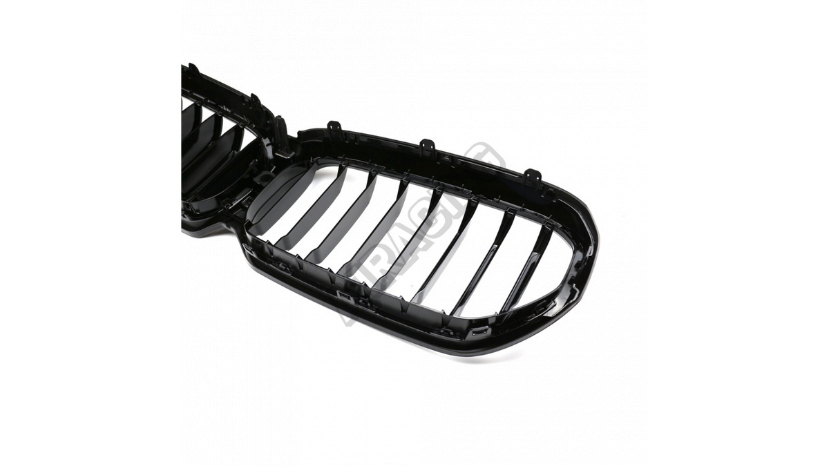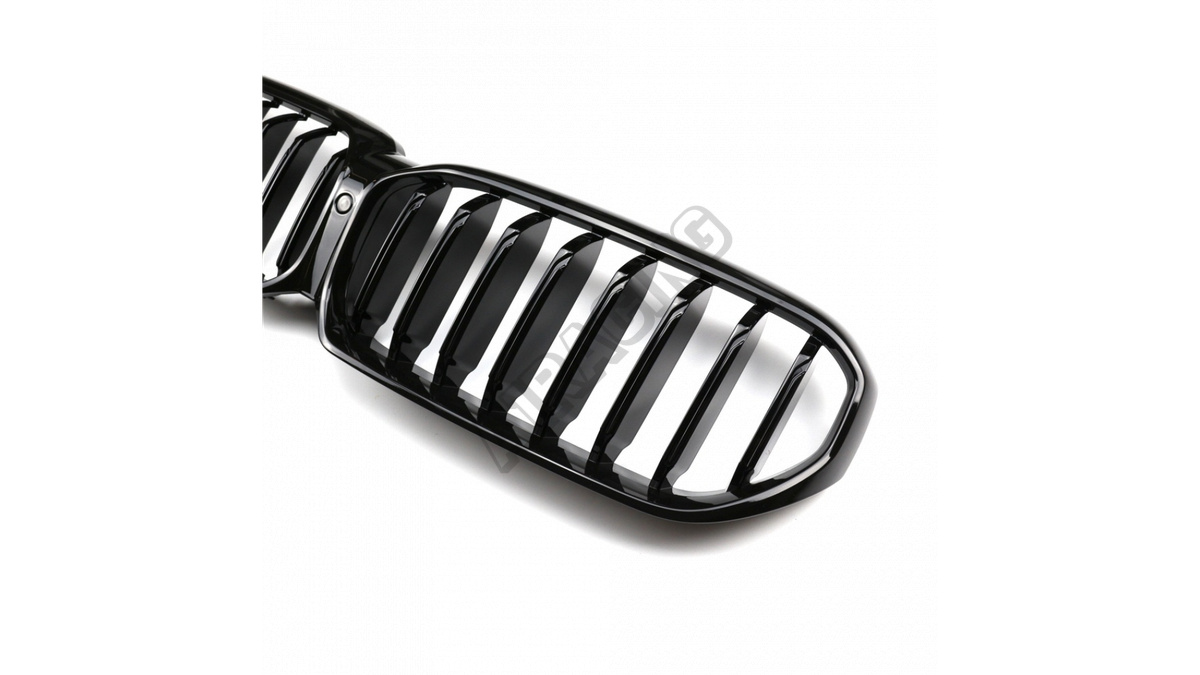 Sportovní gril jednotlivé žebro Gloss Black se vyznačuje moderním designem a dokonale zapadá do vzhledu BMW 5 (G30, F90) Sedan (G31) Touring Facelift 2020-současnost.