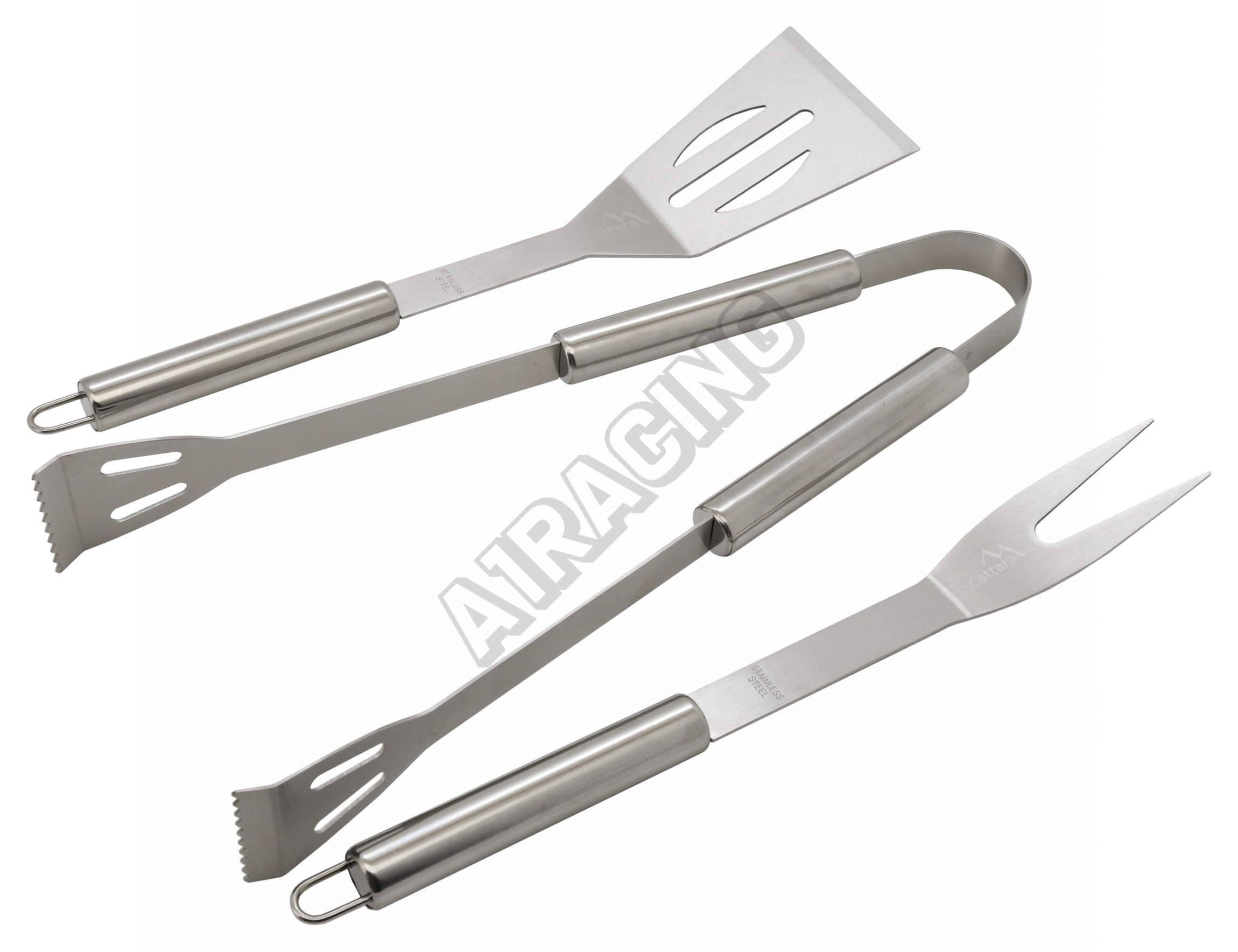 Kleště jsou speciálně tvarovány pro jistý úchop nejrůznějších pokrmů a mají délku 35 cm. Dvouzubá vidlička s délkou 32 cm. Obracečka délky 33 cm s precizně zabroušenou hranou, a odtokovými otvory pro otáčení masitých ale i jiných pokrmů.