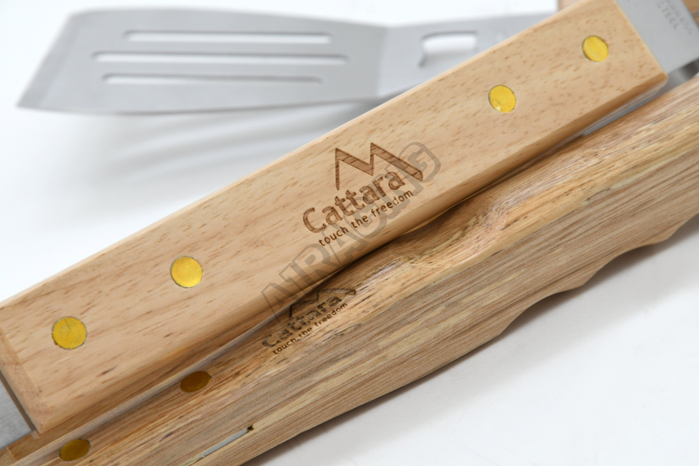 Kleště jsou speciálně tvarovány pro jistý úchop nejrůznějších pokrmů a mají délku 35 cm. Trojzubá vidlička s délkou 39 cm. Obracečka délky 40,5 cm s precizně zabroušenou hranou, a odtokovými otvory pro otáčení masitých ale i jiných pokrmů.