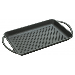 Grilovací pánev z litiny obdélníkového tvaru s rozměry 33 x 21,5 cm.Pánev nabízí prostor pro tepelno