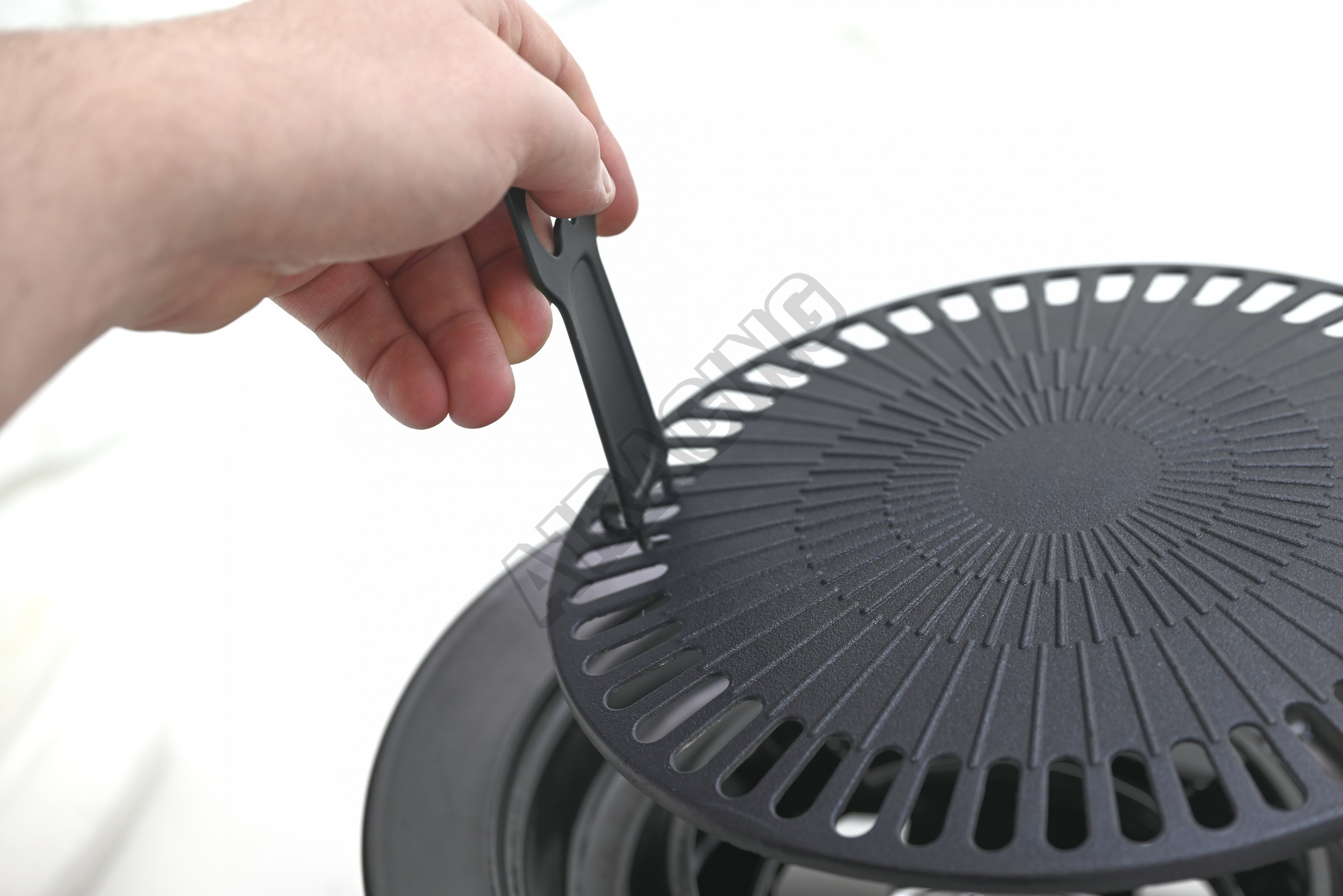 Použití je jednoduché, rošt se pouze položí na vařič. Součástí balení je rukojeť, pomocí které je usnadněná manipulace s roštem. Rukoejť lze připadně využít i jako otvírák lahví.