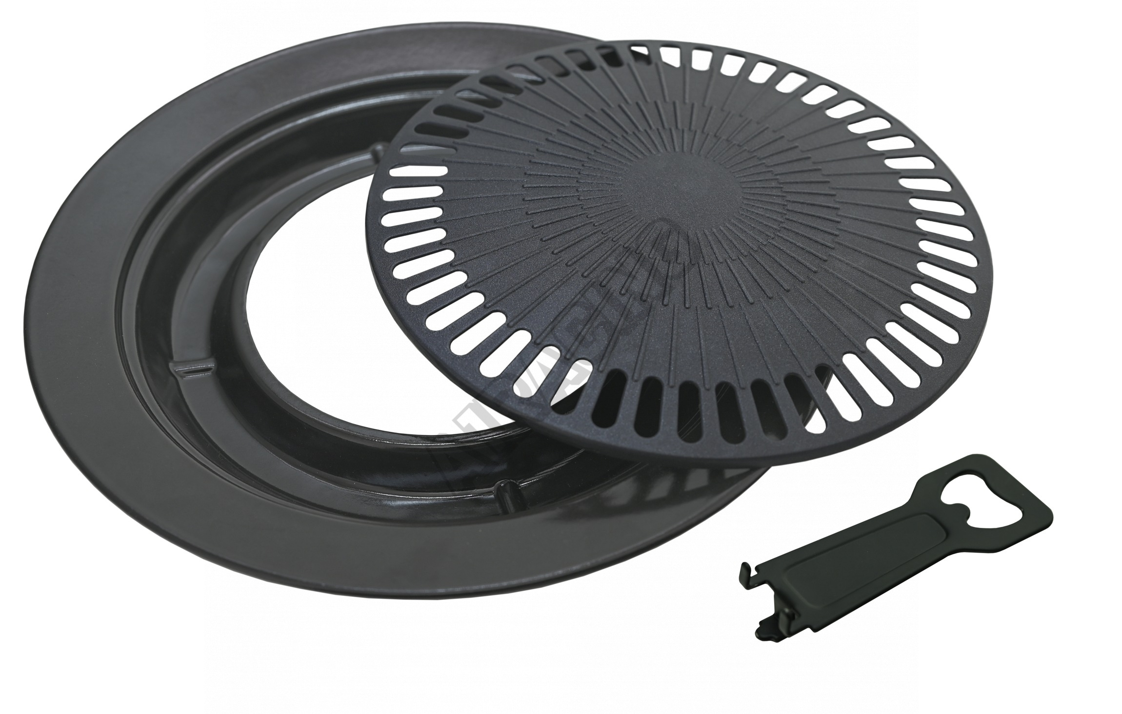 Celý „talíř“ má vnější rozměry 32 cm s výškou 4 cm a je doplněn žlabem pro skapávající tuk. Pro snížení kouřivosti při grilování je vhodné žlab naplnit malým množstvím vody, čímž se zabrání přepalování tuku. Kvalitní smaltovaný povrch talíře umožňuje snadné čištění.