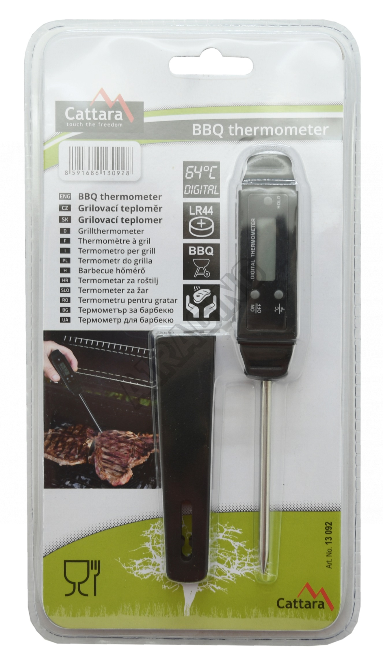 Praktický pomocník pro grilování opatřený digitálním teploměrem.