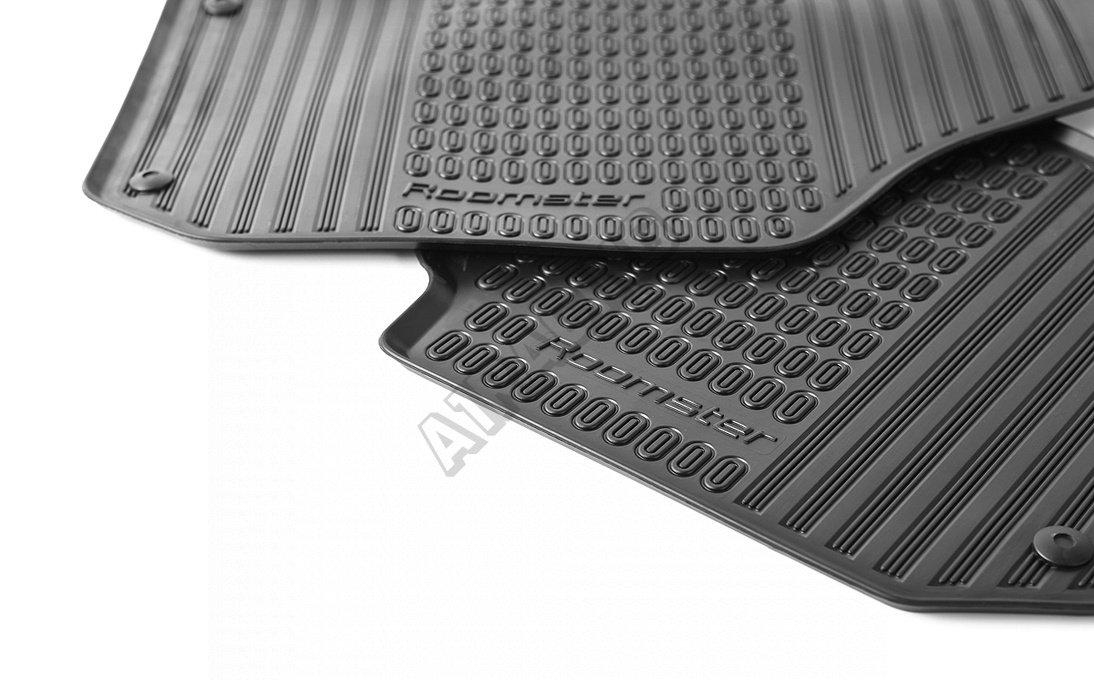 Originální gumové koberce se zvýšeným okrajem, přesně tvarované, snadno omyvatelné. Nápis Roomster na předních kobercích.