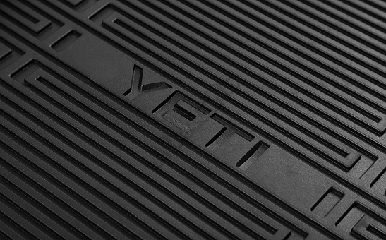 Originální gumové koberce se zvýšeným okrajem, přesně tvarované, snadno omyvatelné. Nápis Yeti na předních kobercích.