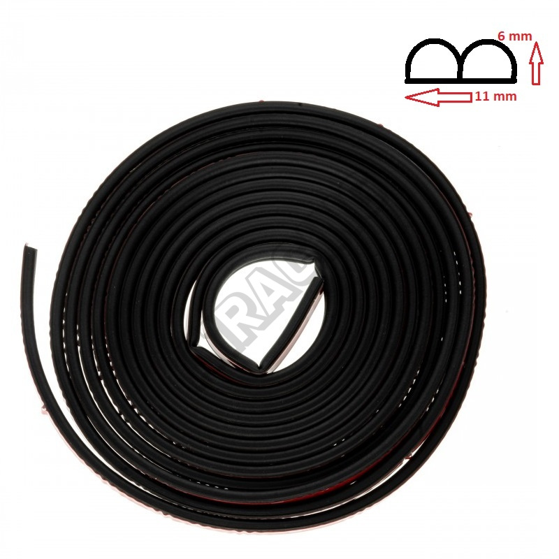 Gumové těsnění dveří 11x6 mm / 500 cm s podlepením