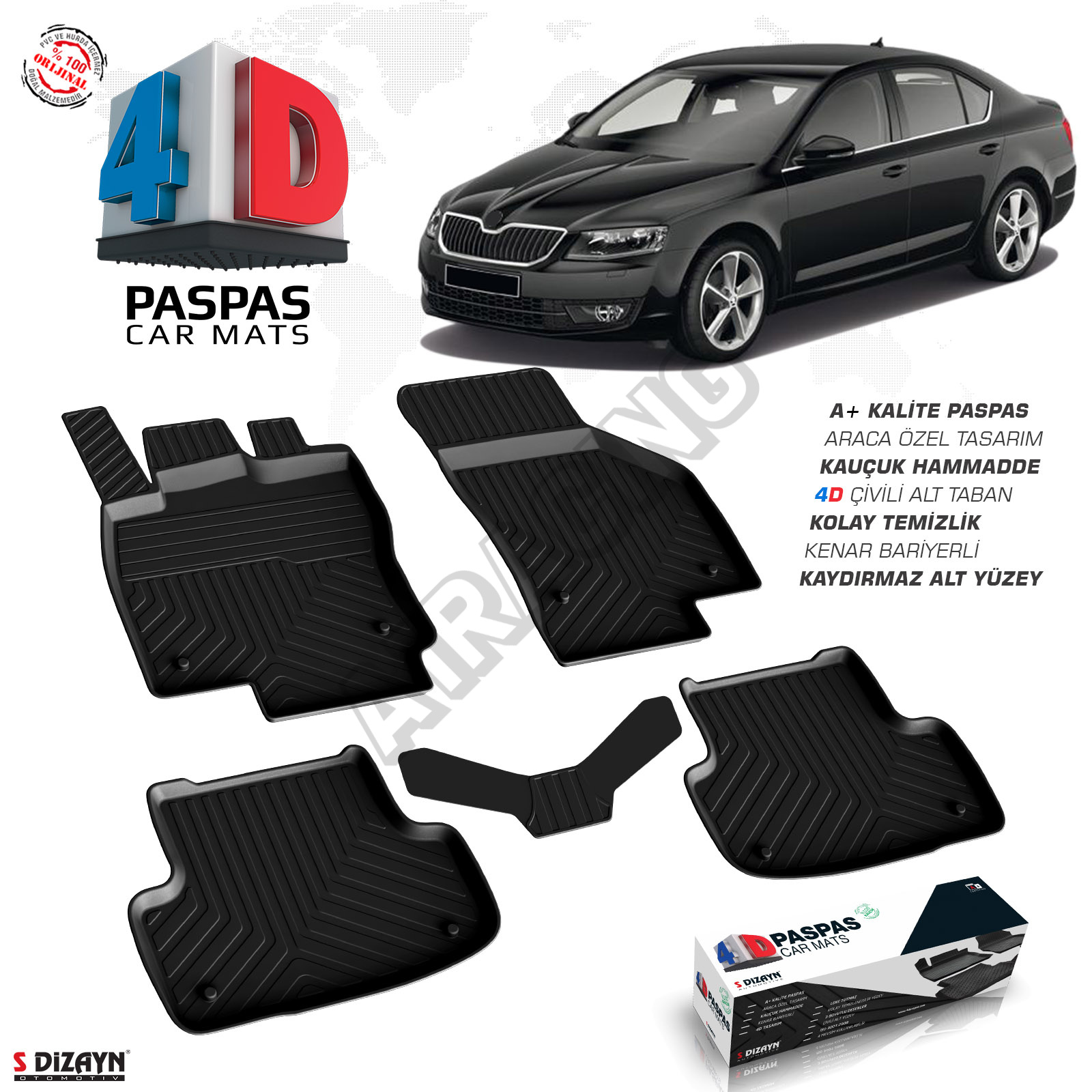 4D autokoberce jsou vyráběny lisovací technikou za použití pryžové suroviny, kde drsné dno má další povrch. Průměrná hmotnost produktu je 5-6 kg.