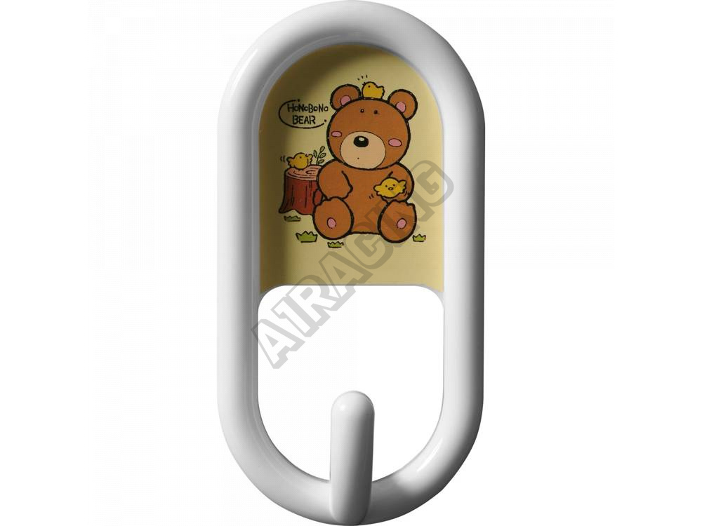 Samolepící háček s dětským motivem opatřen oboustrannou lepící páskou, která zaručuje mimořádnou životnost spoje, spolehlivě nahrazuje vruty či jiné prostředky.