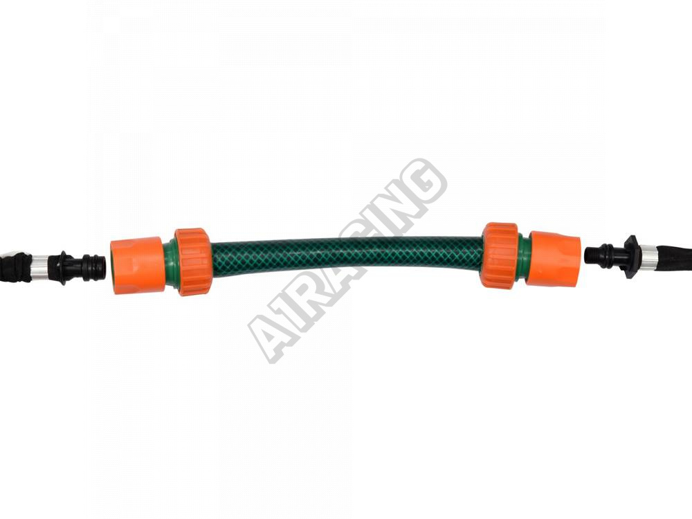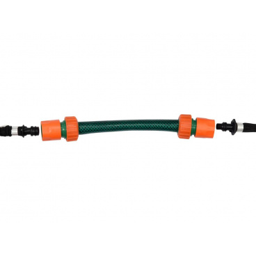 Hadice vybavená 2 konci, oba pro připojení rychlospojkou. Jeden konec s maticí. Šroubovací uzávěr - uzavření systému, odšroubovaný - pokračování systému. Spojení mezi hadicí postřikovače a tradiční hadicí je možné pomocí univerzální rychlospojky. Její výběr závisí na průměru vaší zahradní hadice (1/2", 3/4" nebo 1"). Doporučuje se použít plastové rychlospojky (mosaz nemusí pasovat).
