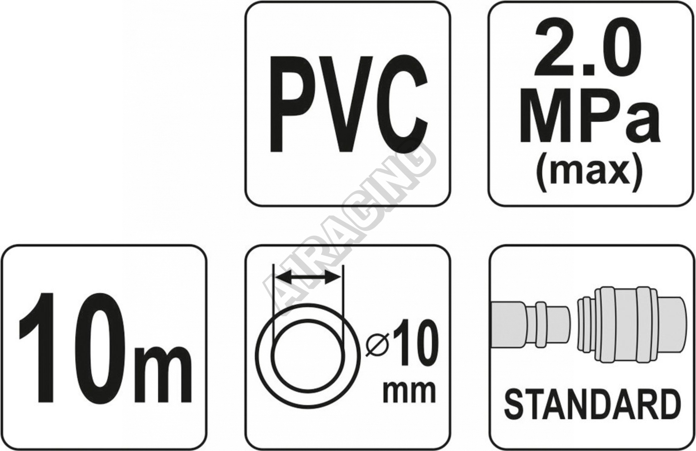 Profesionální vzduchová hadice s délkou 10 m zakončená rychlospojkami. Hadice je zhotovená z PVC odo